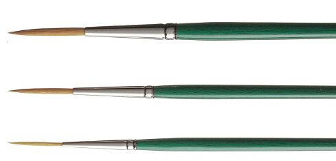 Schriftenpinsel, goldfarbene Synthetikfasern" Sablon", nathlose Silberzwingen, kurze grün-lackierte Stiele.